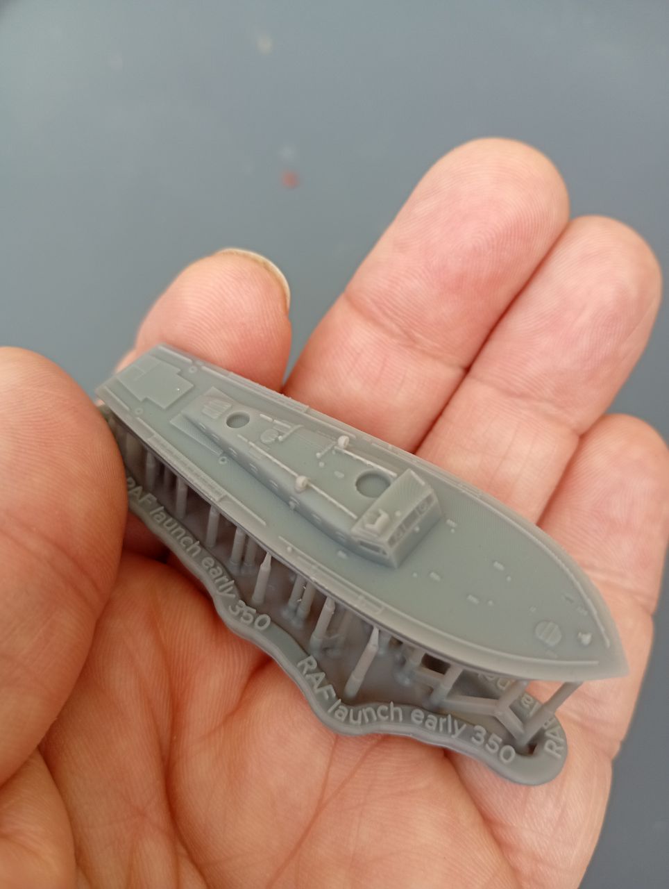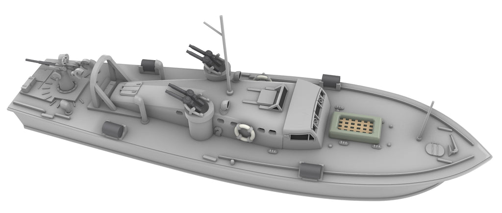 3d printed resin kit of an early fit BPB MGB, 1/350 scale, includes eight crew figures, hull is 54mm in length.
