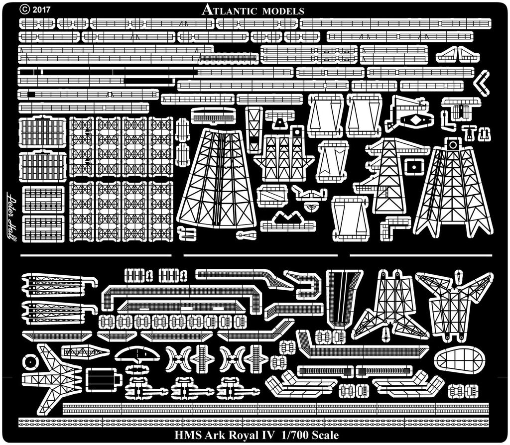 Etched brass detail set for the Atlantic Models HMS Ark Royal, 1/700.