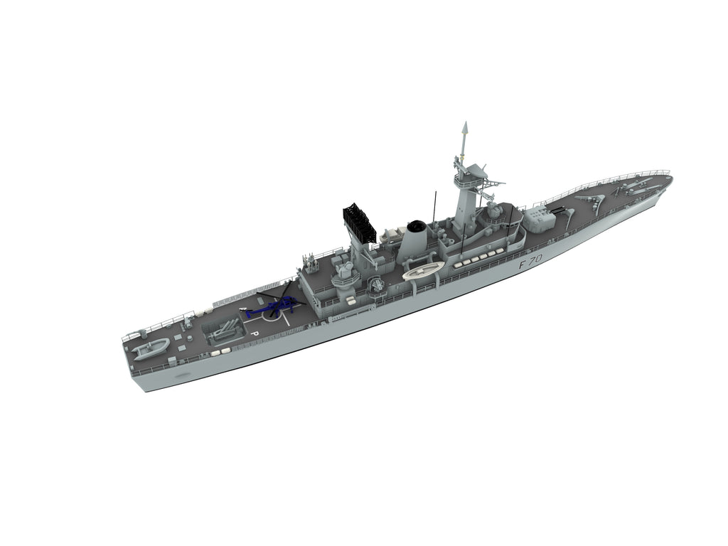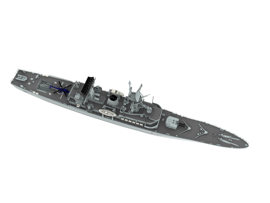 3d printed resin kit with photoetch and decals 1/700, waterline only. This kit shows Apollo in 1972 early fit with main gun and seacat with plated over stern.