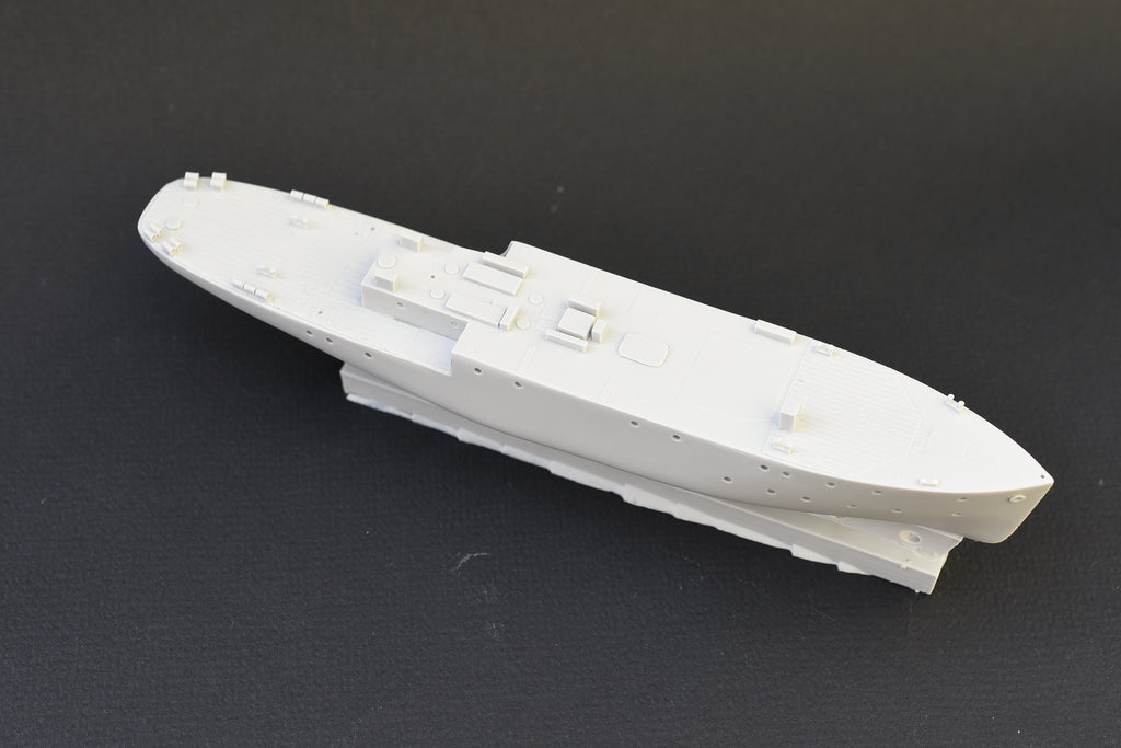 Resin full hull kit with photoetched and 3d printed parts and decals. Includes 3d printed parts by Black Cat Models and two thicknesses of etch. for structural and detail parts.