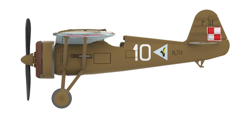 3d printed with three decal options, clear windscreen and a small etched fret for the gunsight, this is a kit of the iconic Polish fighter of 1939 1/144 scale.