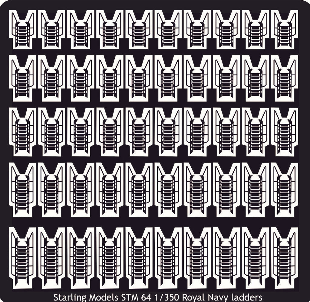 Photoetched parts, 1/350, various sizes of inclined ladders to fit Royal Navy ships. On 0.2mm brass for a more three dimensional and stronger part.