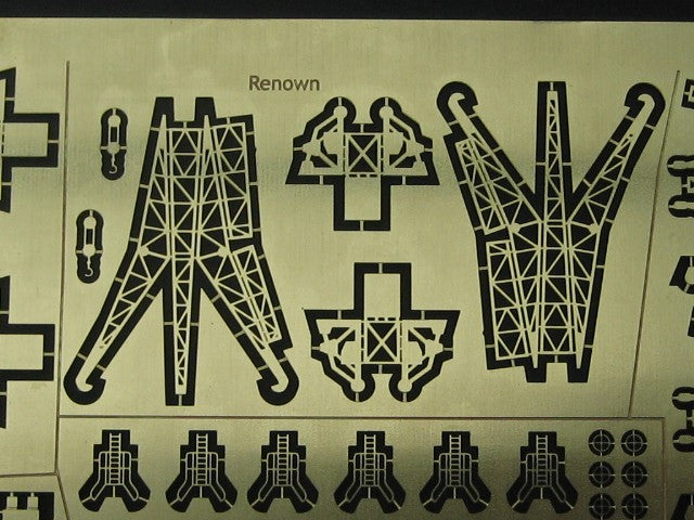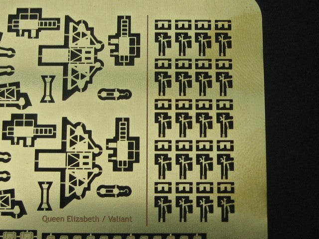 A set to add detail to Royal Navy battleships of WW2, this first set includes parts for King George V class, Renown, Nelson and Queen Elizabeth or Valiant. Sufficient parts are included to equip two models, as well as cranes also included are doors, ladders, oerlikons, two types of railing, searchlight details, hatches, boat oars, type 271 and type 291 radars and walrus aircraft propellors.