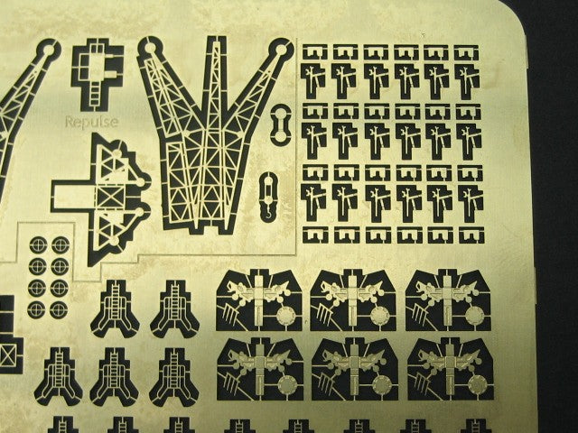 Royal Navy Battleships Set 2, this includes cranes for Warspite or Malaya, Rodney, Repulse and crane and catapult for Barham. This set should also includes type 271 radar, doors, hatches, ladders, oerlikons, quad vickers machine guns, searchlight detail, boat oars and two types of railing.