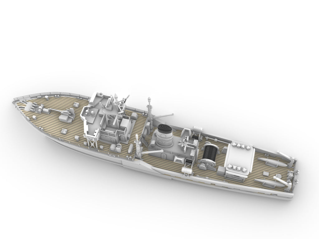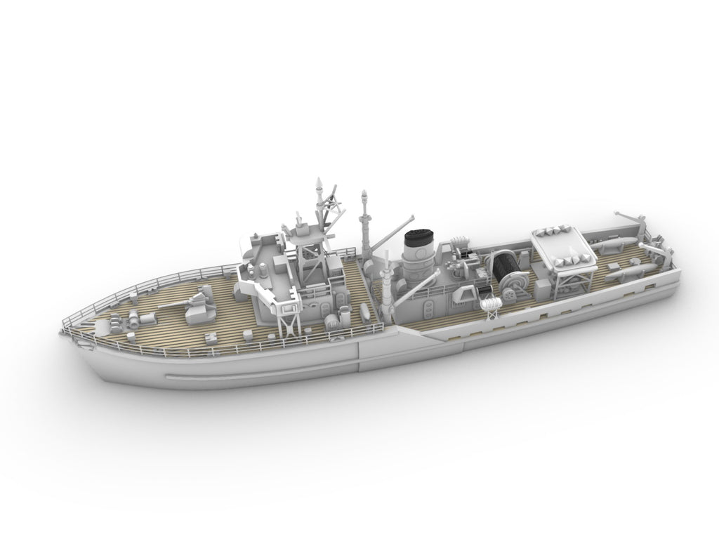 This set includes two 1/700 Ton class minesweepers, one open bridged and one closed bridge. The kits are waterline and 3d printed with photoetched parts and decals. One complete kit of each type is included, the hulls measure 68mm.